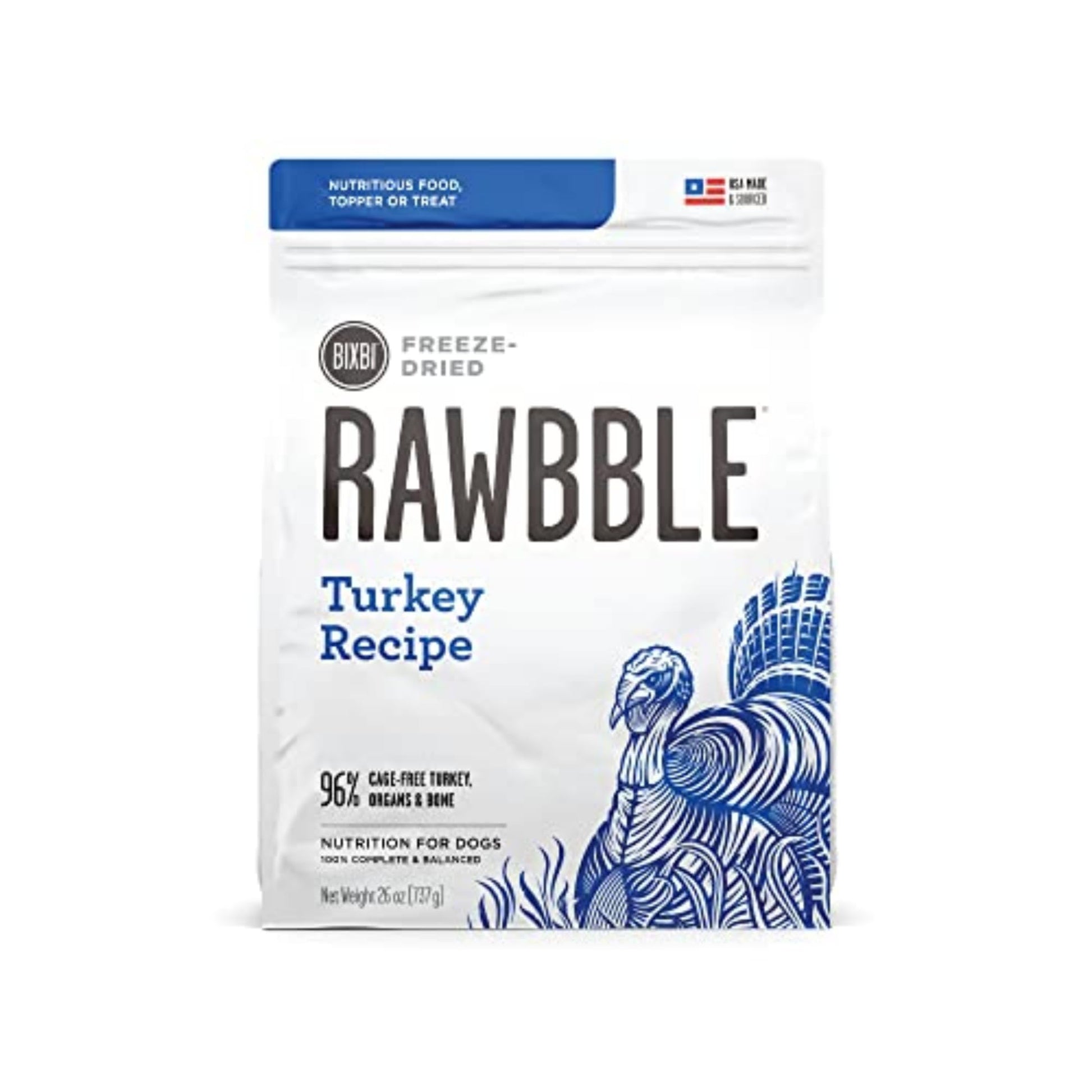 BIXBI Rawbble Freeze Dried Dog Food, Turkey Recipe, 26 oz - 96% Meat and Organs, No Fillers - Pantry-Friendly Raw Dog Food for Meal, Treat or Food Topper - USA Made in Small Batches
