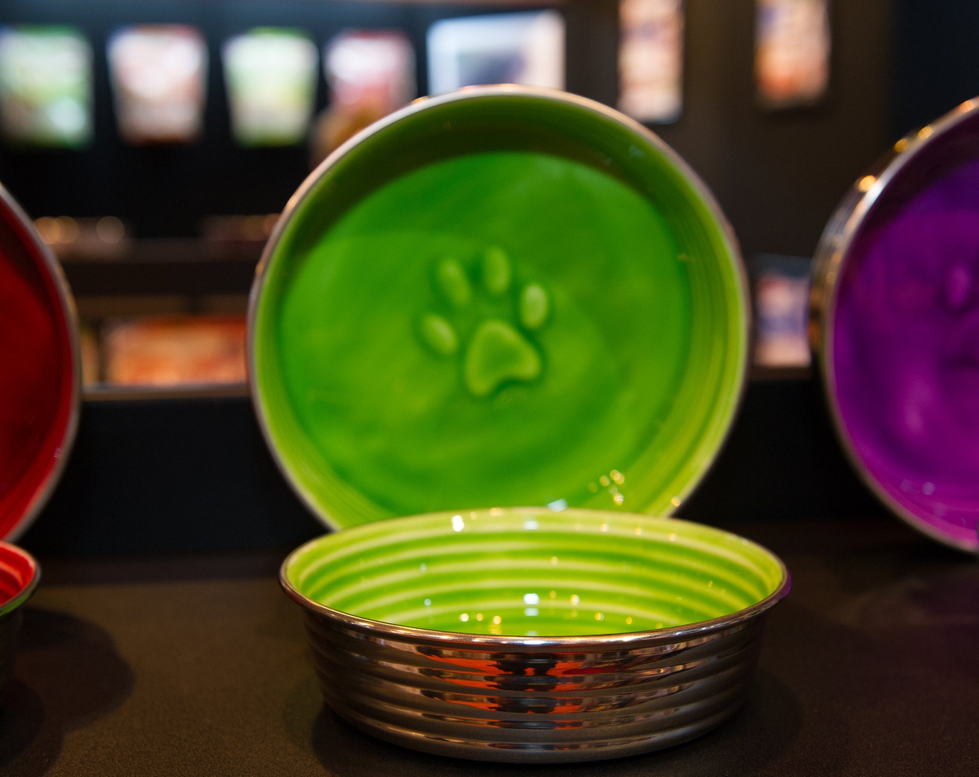 Bring the cookware designs of France into your home for your pet to enjoy with the Medium, Chartreuse Green Le Bol from Loving Pets. The Le Bol collection imitates the bright colors of French cookware with the added benefit of increased durability thanks to the rubberized bottom. With ribbed walls and an embossed paw print, Le Bol offers exceptional imagery while enabling you to quickly gauge whether you need to refill the dish with food or water. The tough stainless steel exterior compliments the ceramic-like material inside, which features a smooth glaze that is easy to clean. Le Bol dog dishes offer more than a beautiful design. Explore some of the details which set these stainless steel dog bowls apart from other options: Le Bol is a tough product, and the stainless steel exterior is an excellent option for excitable pets that can get physical with their bowls at mealtimes. Le Bol features a rubber base to provide the right amount of friction to prevent it from skidding on a hard surface to ensure it stays in one place throughout the entire meal. With Le Bol's modern design and multiple color options, this simple yet elegant dog dish will work well with other interior design elements in your home. Le Bol is a great option to help pets stay clean during mealtime as well. The sturdy no-skid dog bowl will not tip over during meals, keeping your pet's food securely in the bowl and reducing the risk of spills. Your pet deserves the best, and with Le Bol, they can have it. With veterinarian-recommended stainless steel and durable construction, Le Bol is a great option for dogs of any size and age.