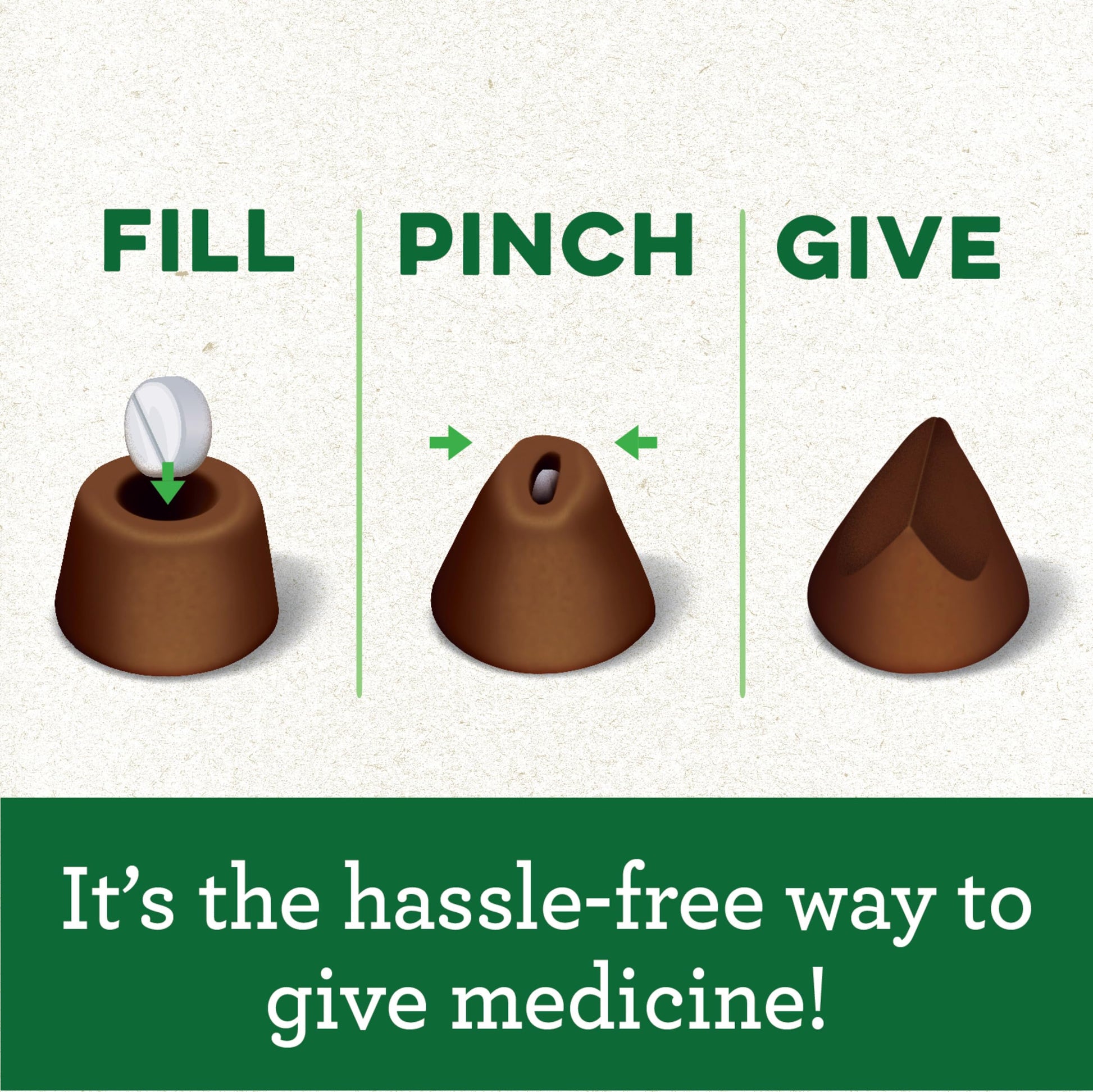 GREENIES PILL POCKETS Treats are the number-one vet-recommended choice for giving pills.* One of the best ways to get your dog to take medicine is to hide the tablet inside a tasty treat. GREENIES PILL POCKETS Treats have built-in pouches to easily hide medicine and ensure your dog takes it. These all-natural treats are a healthier alternative to using human foods, because they have fewer calories and less fat and sodium. Make medicine-giving more enjoyable for both you and your dog.