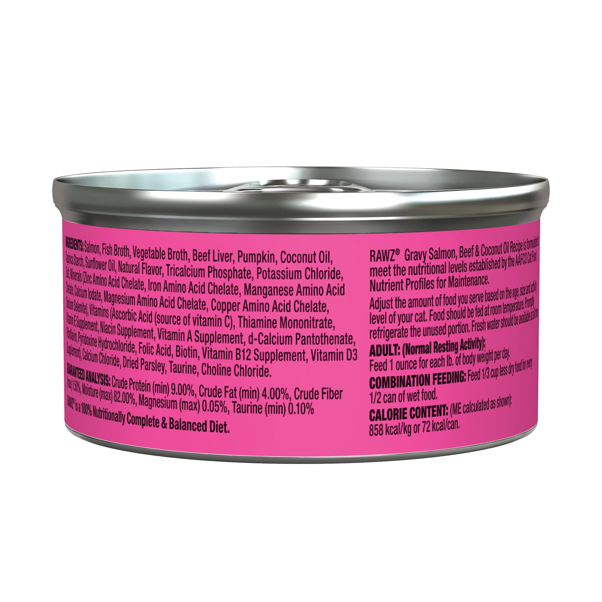 Rawz Natural Premium Minced Canned Cat Food in Gravy from Bone Broth - Made with Real Meat Ingredients No BPA & Gums - (3 Ounce cans), Salmon & Beef
