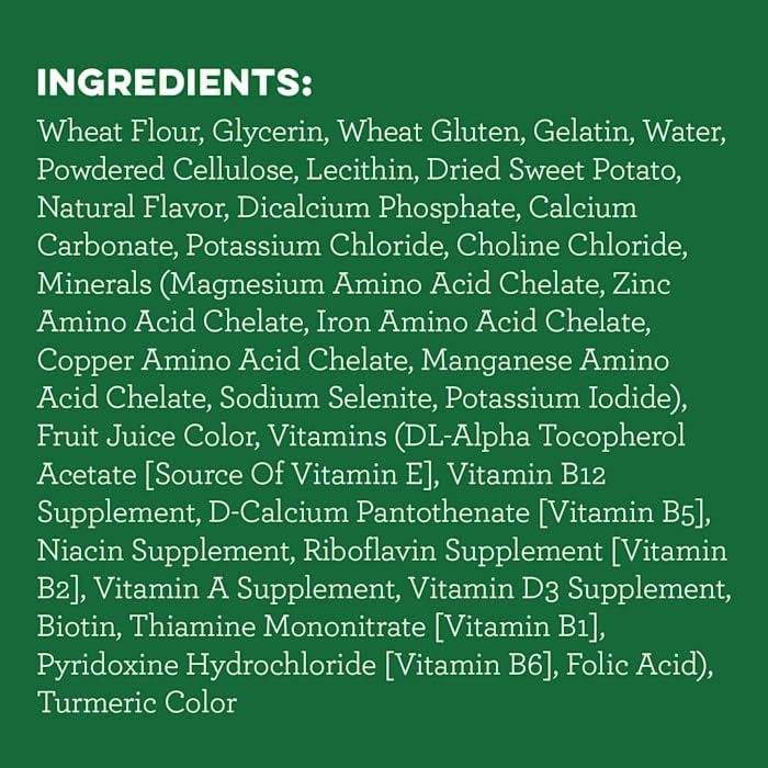 GREENIES TEENIE Natural Dental Dog Treats are irresistible daily dental chews that your canine companion will love and are made for small breed dogs between 5 and 15 pounds. These delicious dog treats are made with real sweet potato and natural ingredients, plus vitamins, minerals and nutrients. Thanks to the unique, chewy texture, these canine treats clean right down to the gum line to help fight plaque and tartar and freshen your dog's breath.