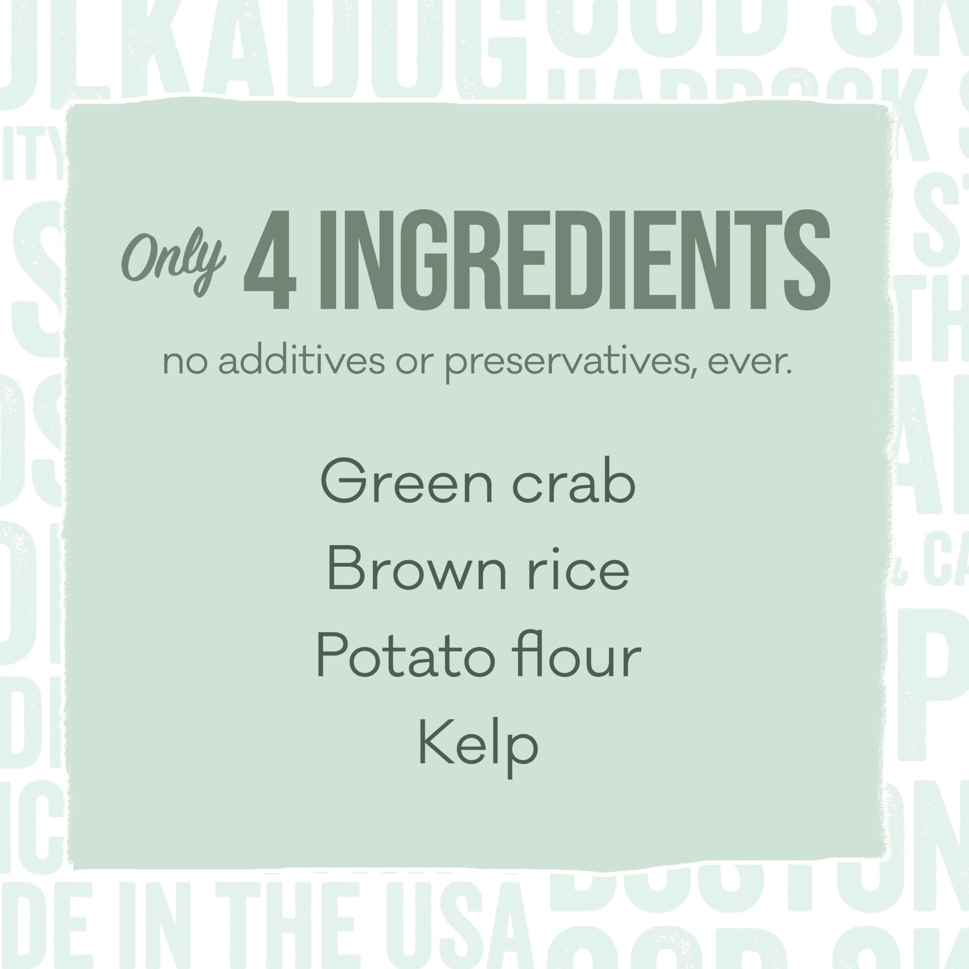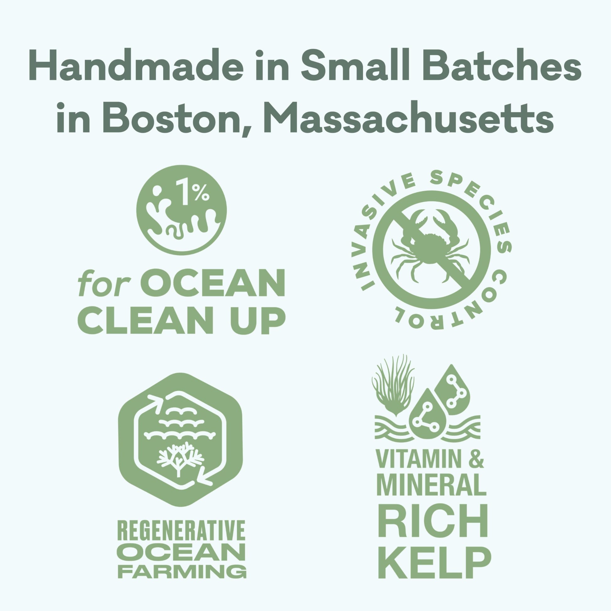 Green Monstah is made from green crab and kelp, two local ultra-rich sources of protein and Omega-3s. And these two ingredients are particularly special. Finding ways to manage the over-abundance of green crab populations in New England waters is the challenge. The reward is the restoration of biodiversity in coastal ecosystems, and the creation of new economic opportunities for local fishers. High-protein kelp, one of the healthiest, richest sources of amino acids, faces increasing stress from warming waters and invasive crab species, New England kelp farming is restoring balance to the natural ecosystems.