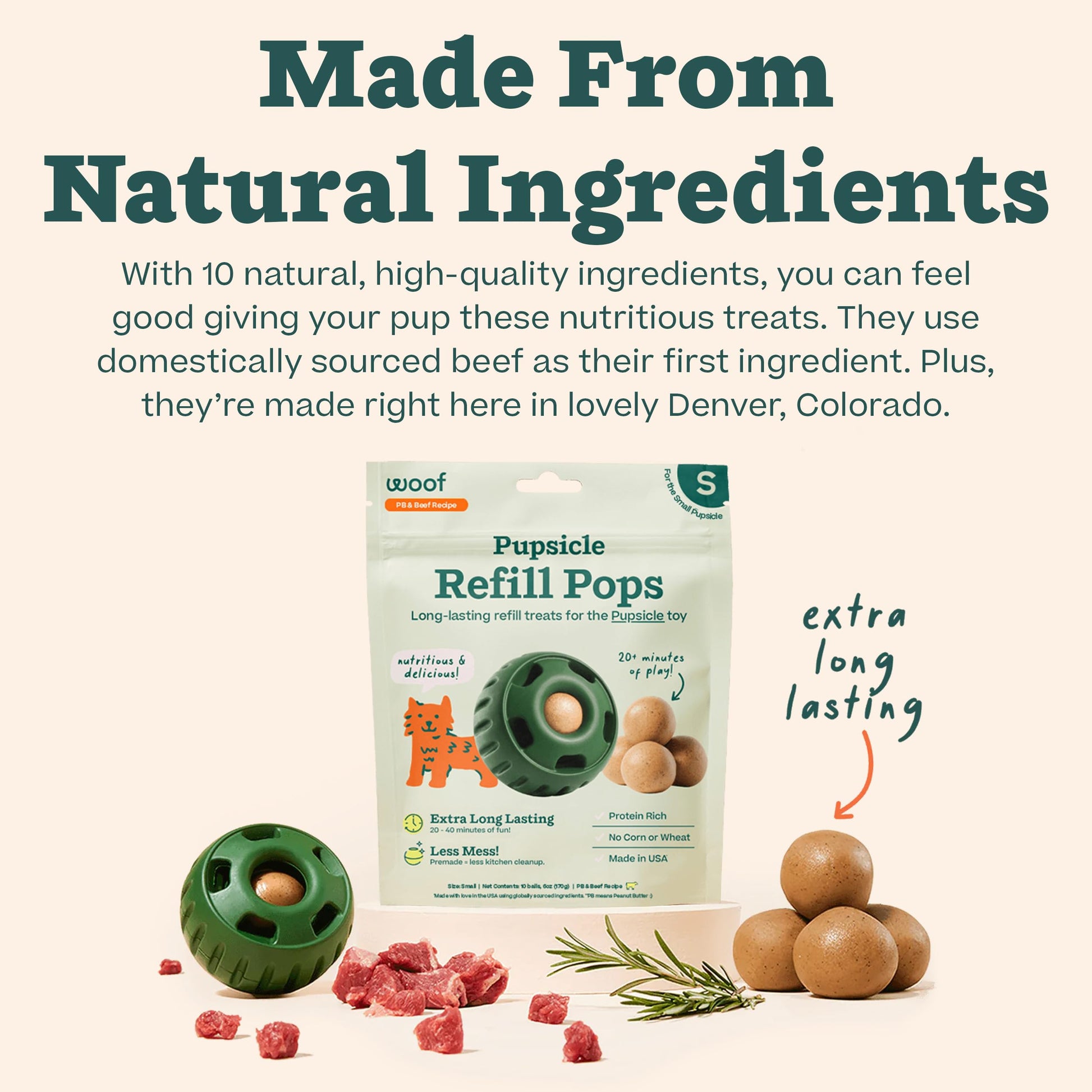 WOOF Pupsicle Refill Pops - Low-Mess Dog Snacks - with Peanut Butter and Beef - Dog Treats - Long Lasting - Small Pops - 10 Count