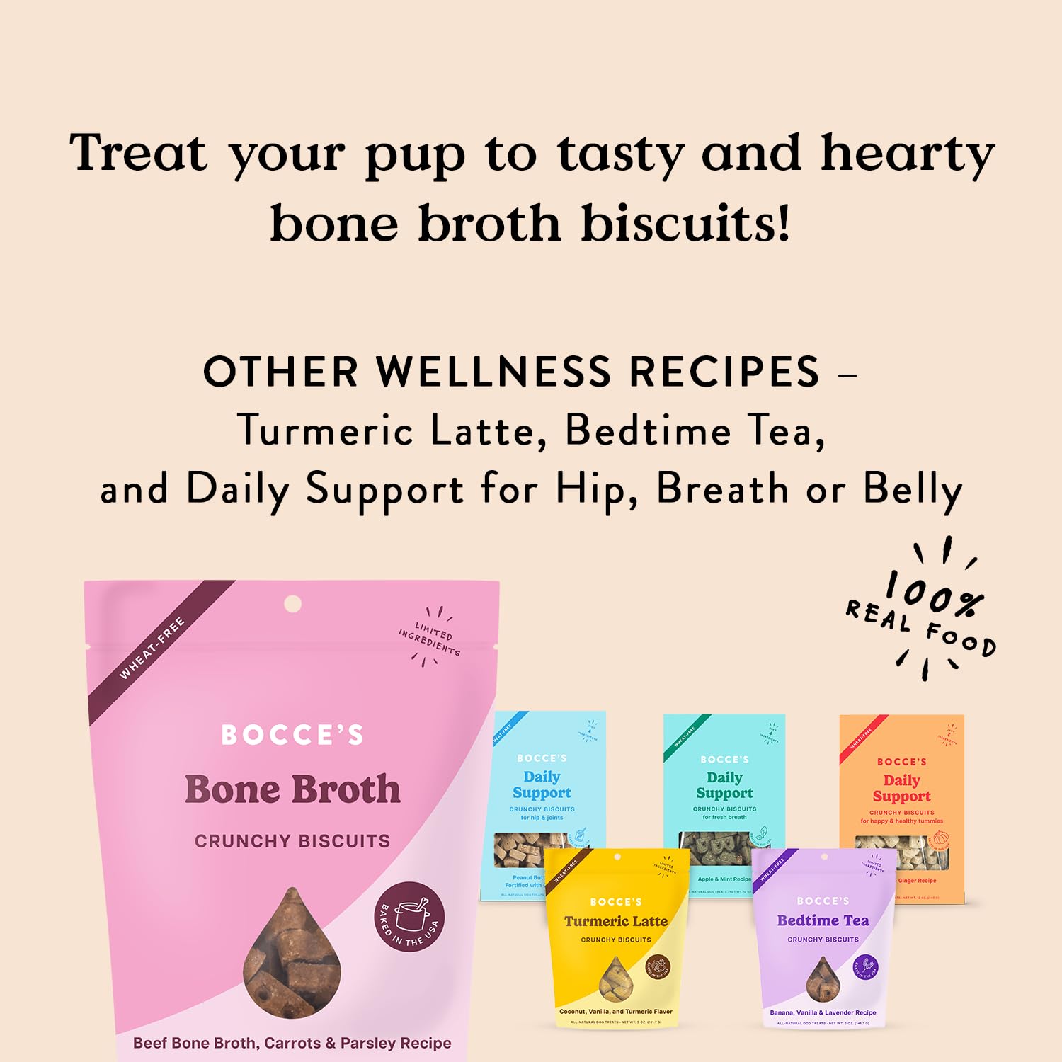 Bocce's Bakery Oven Baked Bone Broth Treats for Dogs, Wheat-Free Everyday Dog Treats, Made with Real Ingredients, Baked in The USA, All-Natural Biscuits, Beef Bone Broth, Carrots, & Parsley, 5 oz