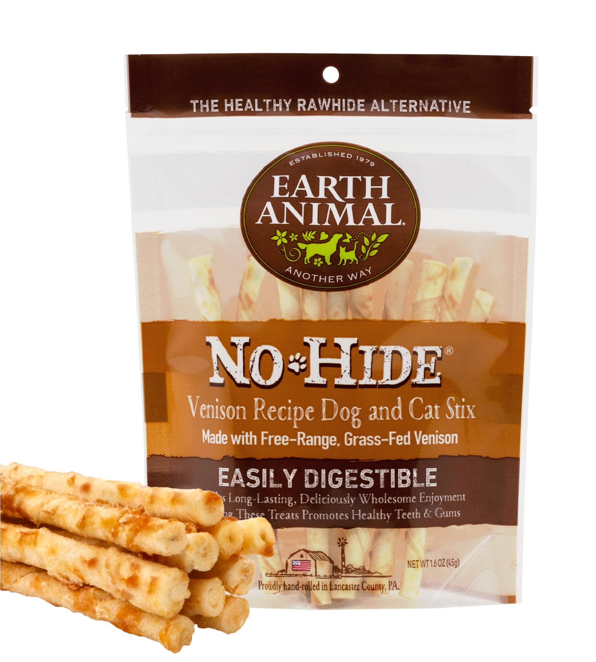 Earth Animal No Hide Stix Venison Flavored Natural Rawhide Free Dog Chews Long Lasting Chew Sticks | Treats for Small Dogs and Cats | Great for Aggressive Chewers (1 Pack)