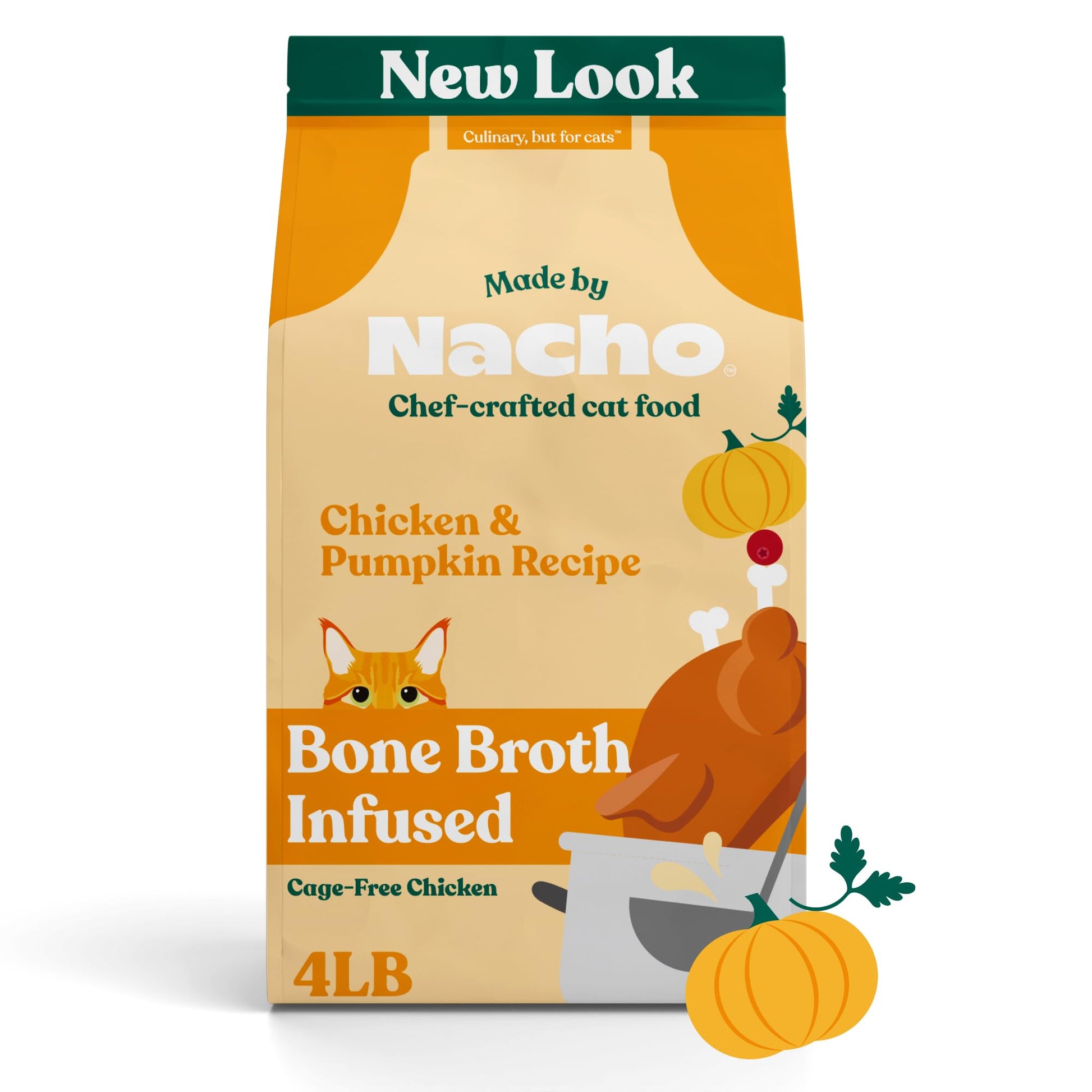 Made by Nacho Bone Broth Infused Dry Cat Kibble - Cage-Free Chicken & Pumpkin Recipe - Premium Grain-Friendly Cat Food 4lb Bag, Limited Ingredients