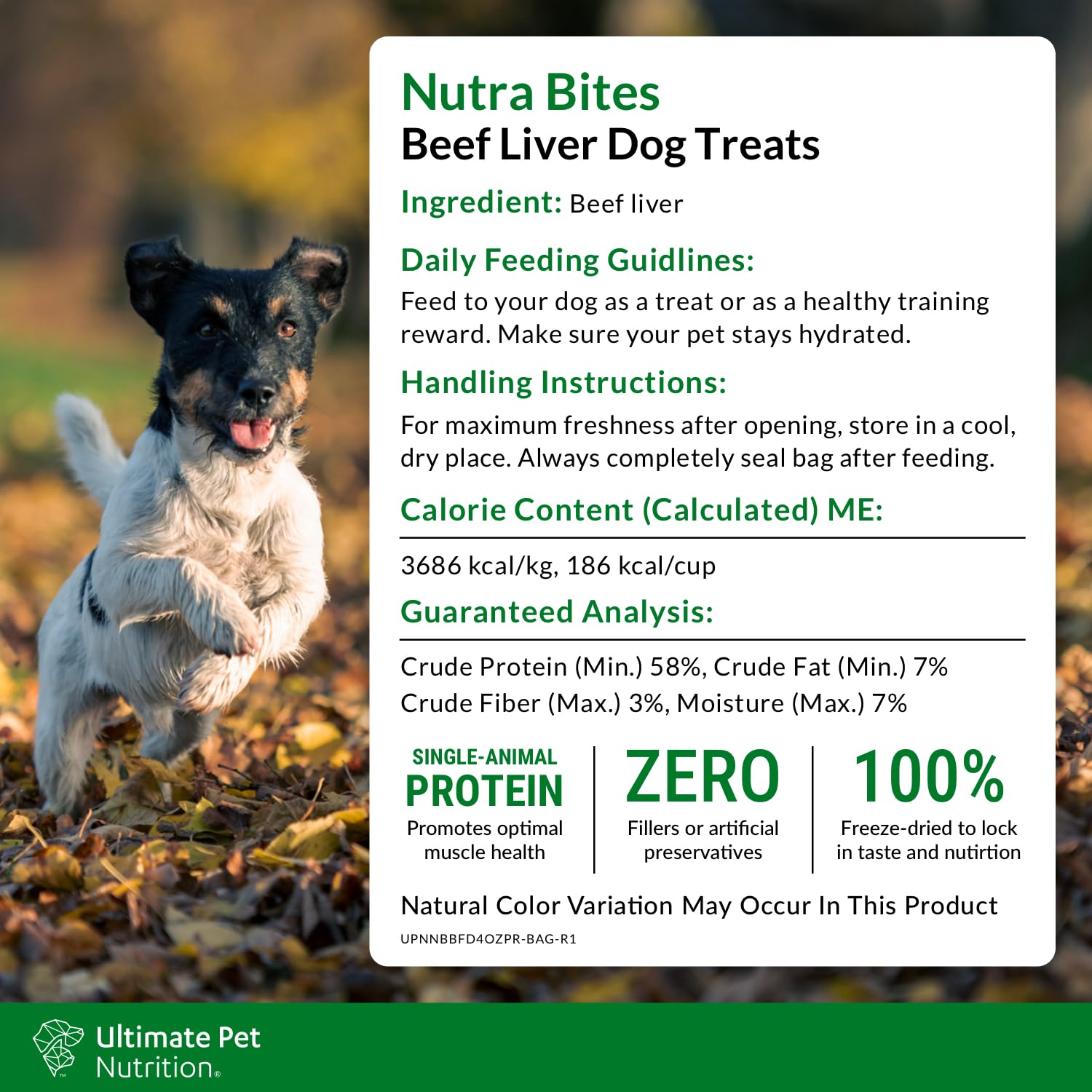 ULTIMATE PET NUTRITION Nutra Bites Freeze Dried Raw Single Ingredient Training Treats Food Topper for Dogs, 4 Ounces, Beef Liver